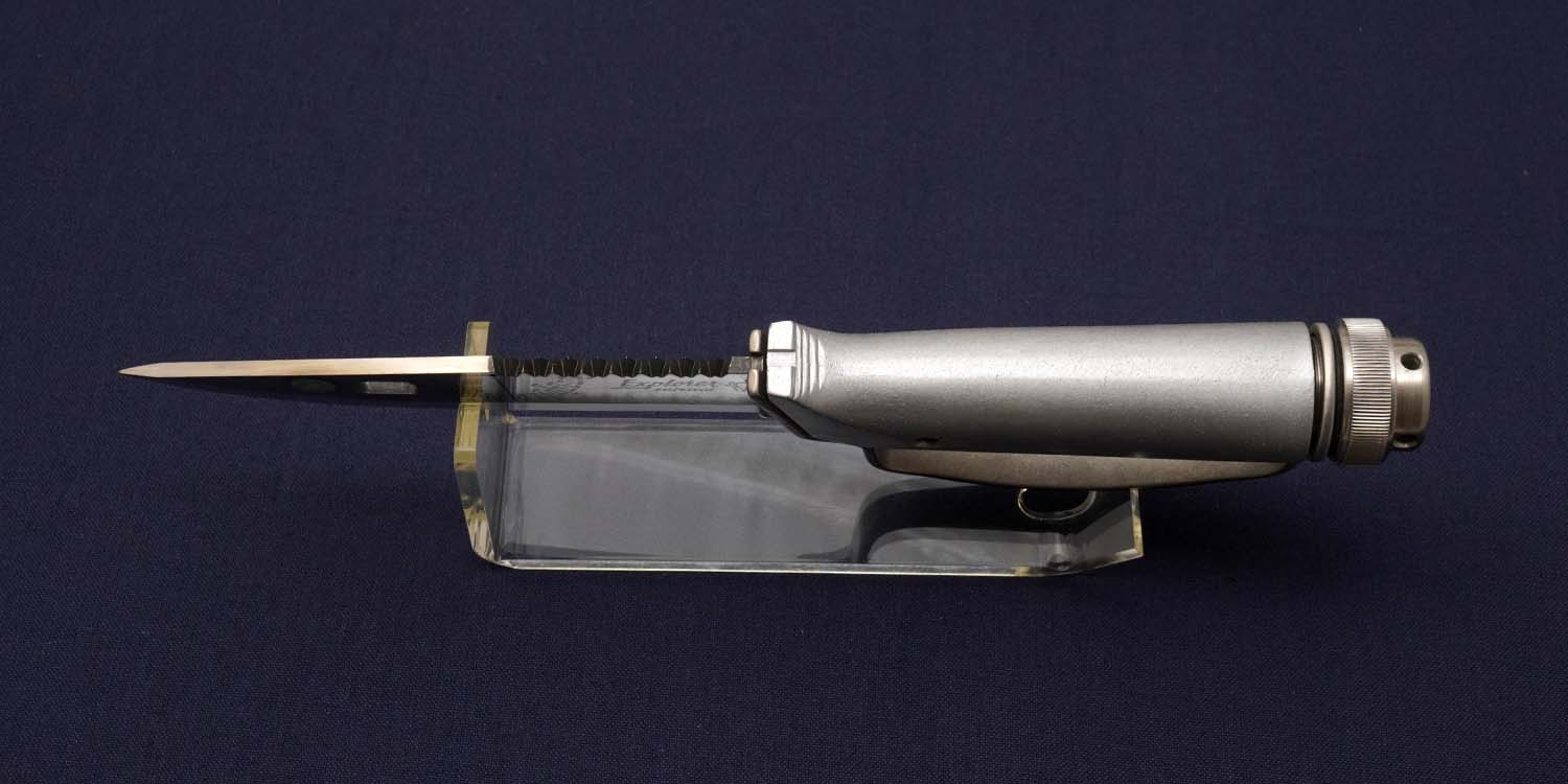 スペインのMARTO社はブームになる以前から先駆けて本格的なサバイバルナイフを生産していた。日本での知名度は低かったものの海外では話題となり、サバイバルナイフの代名詞とさえ言われたブリューワーエクスプローラー。一体成形のアルミハンドルの中にサバイバルキットを収納できるほか日時計やHarpoon(モリ)など、ひと味違う実用品がセットされている。特徴的なハンドガードは脱着可能。シースにはシグナルミラー、砥石が装着されている。当時、愛用者にグリンベレーの隊員が多かったそうです。