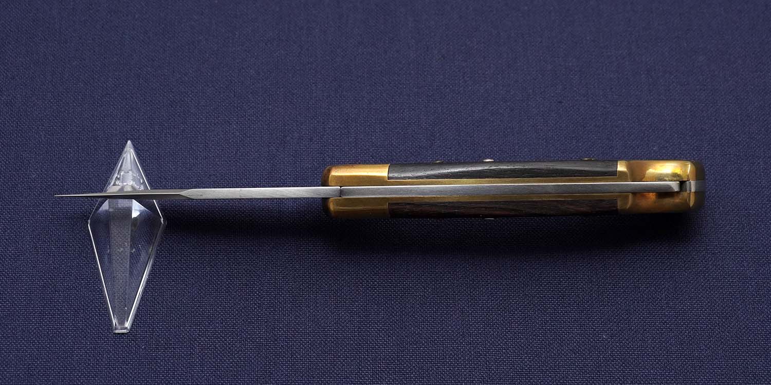 | ハンドル | エボニー(黒檀)/ボルスター:ブラス 108mm 全長183mm ブラス特有の経年変色あり 緑青拭き取り済 |