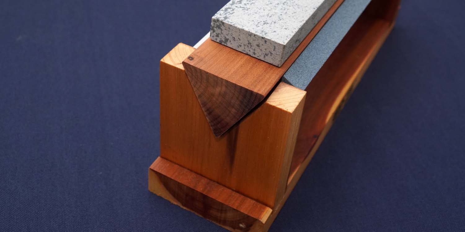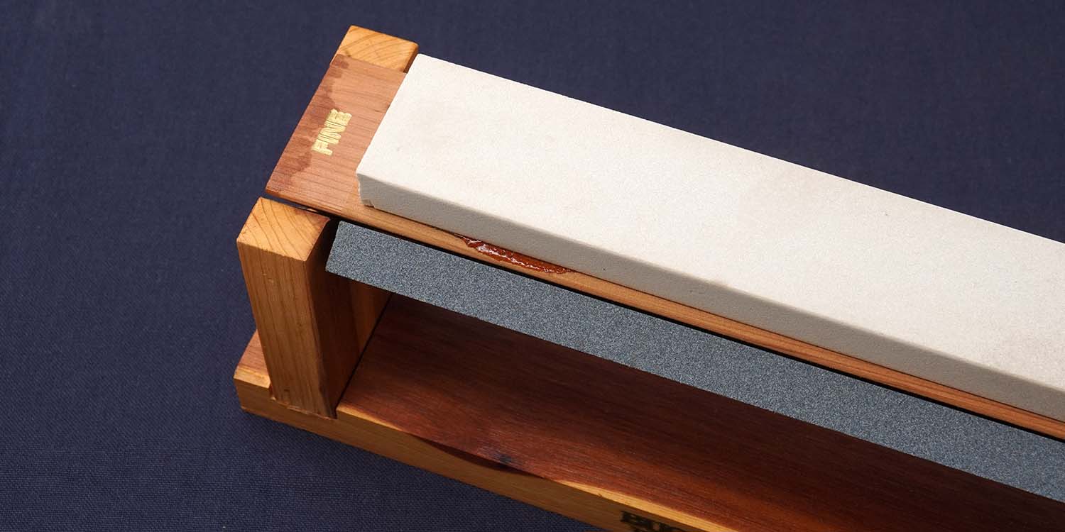 砥石サイズ:40mmX200mmX厚み12mm / 木製台サイズ:73mmX275mmX高さ94mm
