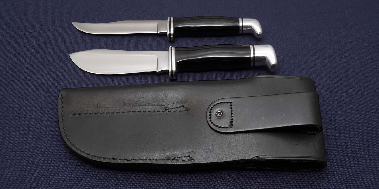 | シース | ブラックレザー 2本が左右 並列に収納できる シミ 小傷あり |