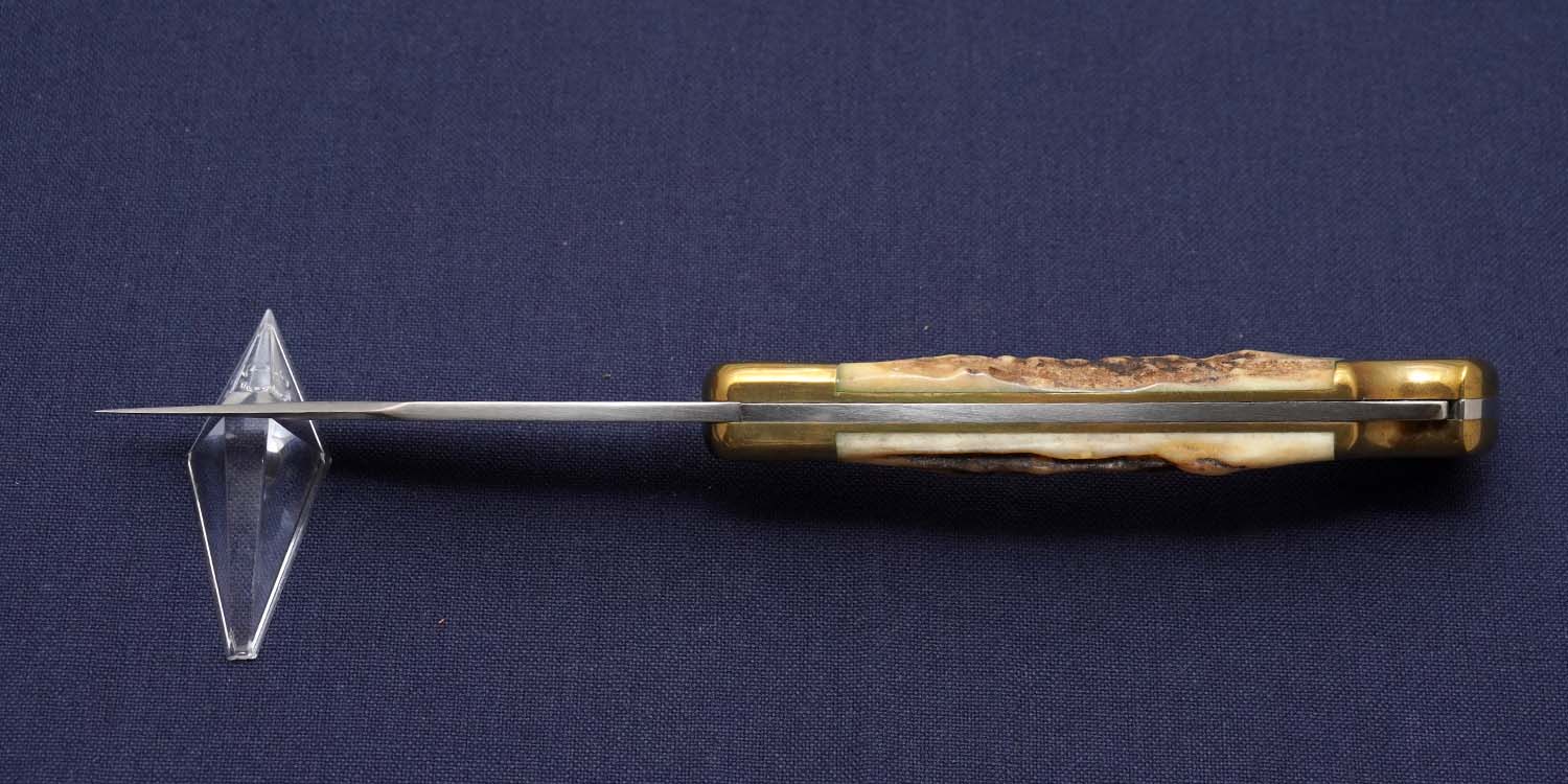 | ハンドル | サンバースタッグ/ボルスター&エンドボルスター:ブラス 123mm 全長 218mm ボルスター部にシリアルナンバー入り ブラス特有の経年変色あり 緑青拭き取り済 |