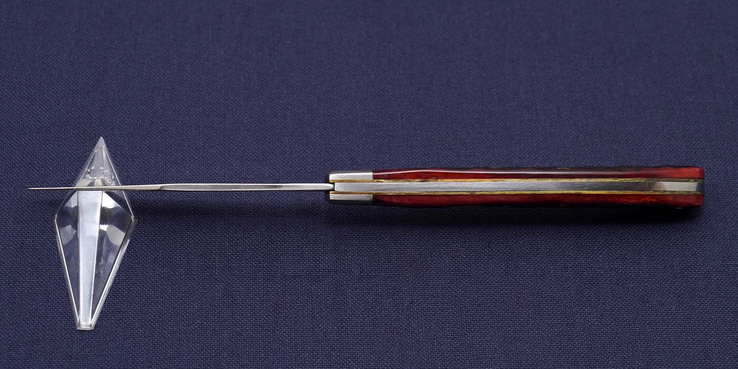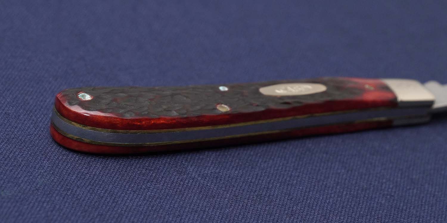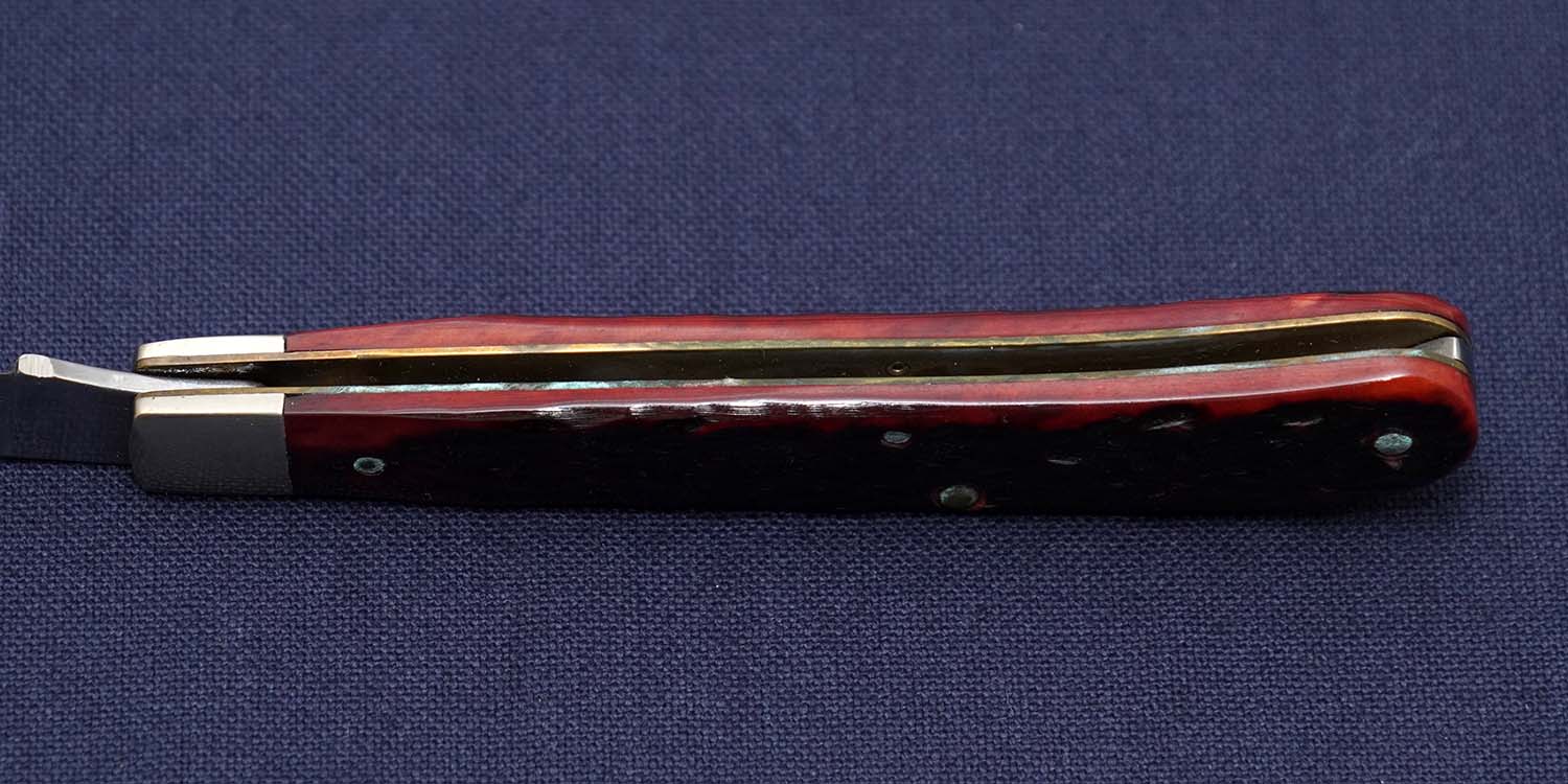 | ハンドル | レッドジグドボーン/ボルスター:ニッケルシルバー 105mm 全長186mm かしめピンとハンドル下方裏に腐食あり ボルスターに小傷あり |