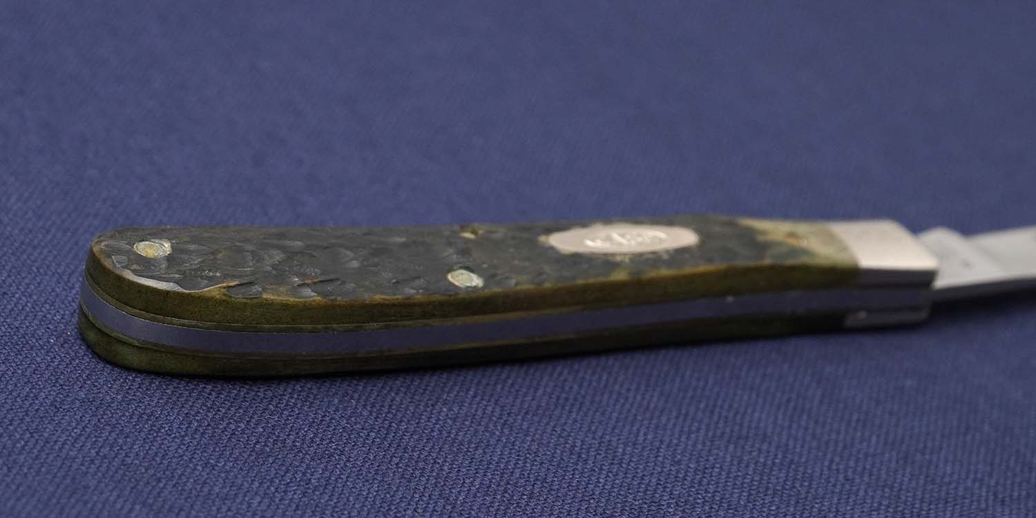 ハンドル | ダークグリーン ジグドボーン/ボルスター:ニッケルシルバー 105mm 全長187mm ボルスターに小傷あり |