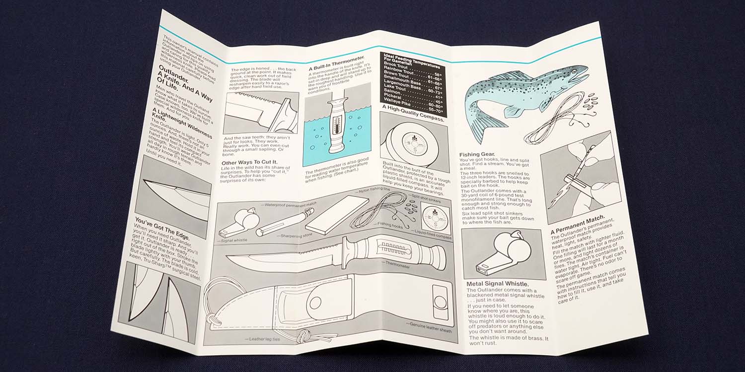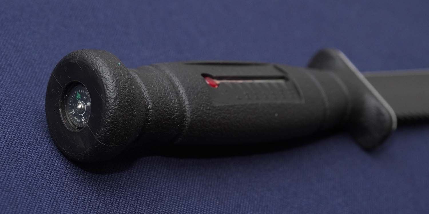 ハンドルに内蔵されたコンパス、温度計、サバイバル用品など使用可能か未確認です。1986年製、コレクションアイテムです。