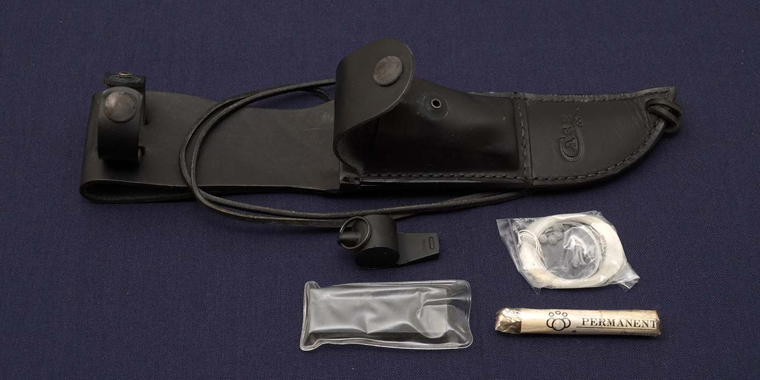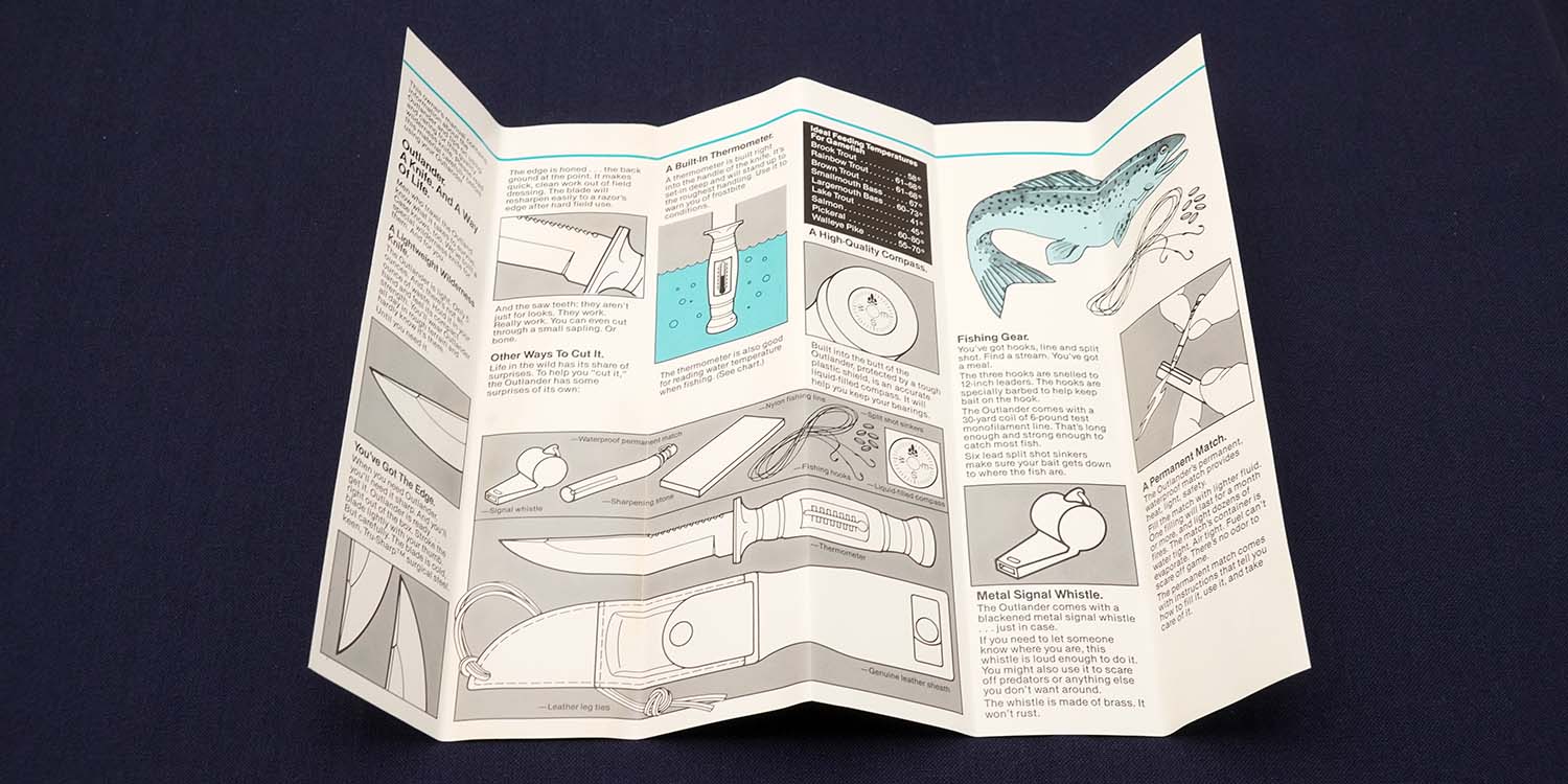 ハンドルに内蔵されたコンパス、温度計、サバイバル用品など使用可能か未確認です。1986年製、コレクションアイテムです。