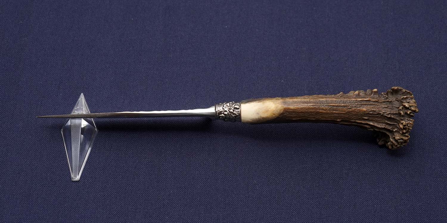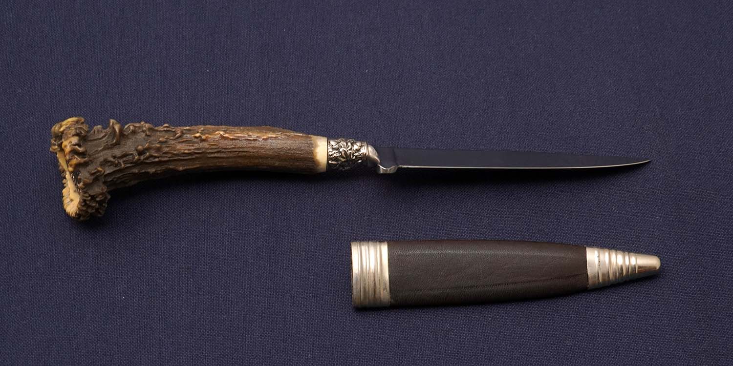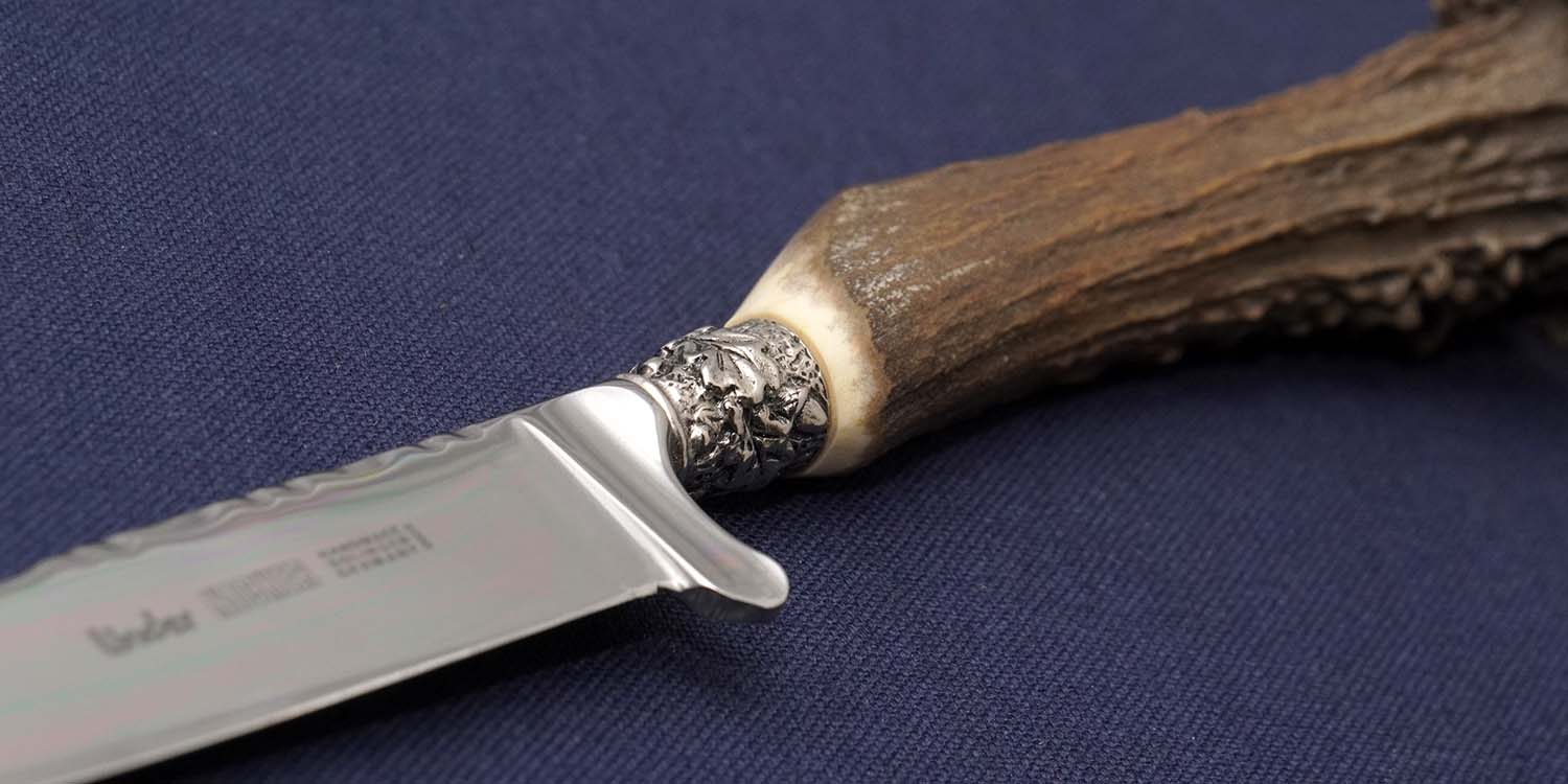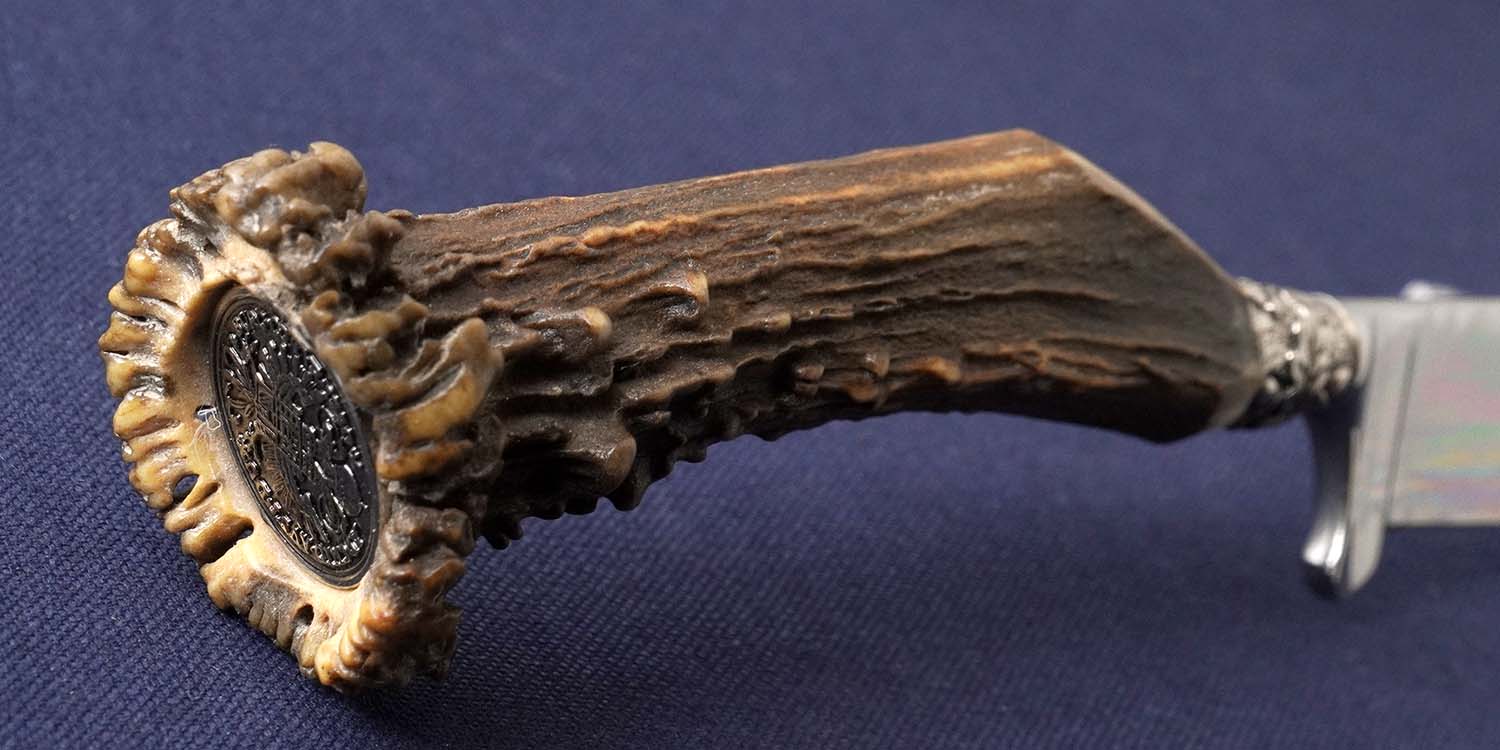 | ハンドル | サンバースタッグ クラウン コイン埋込 /ボルスター:ニッケルシルバー装飾 全長 215mm |