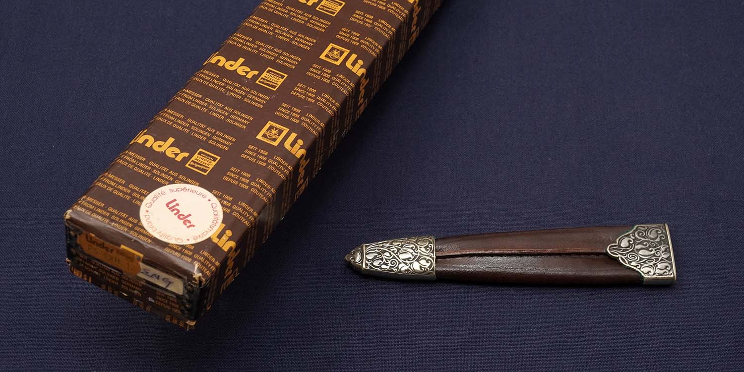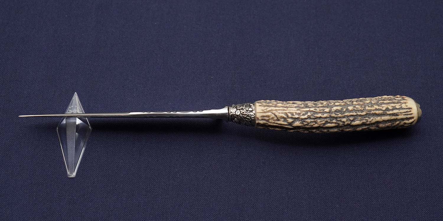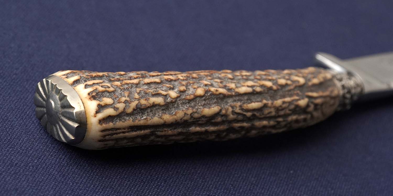 | ハンドル | サンバースタッグ/ボルスター:ニッケルシルバー装飾/バットキャップ:ブラス彫刻入り 全長248mm |
