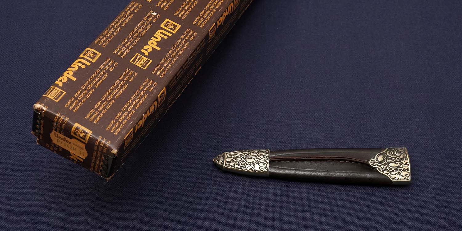 | シース | ブラウンレザー/両端金具に型押し装飾 |
