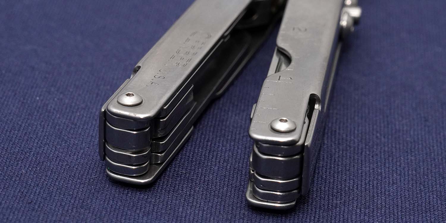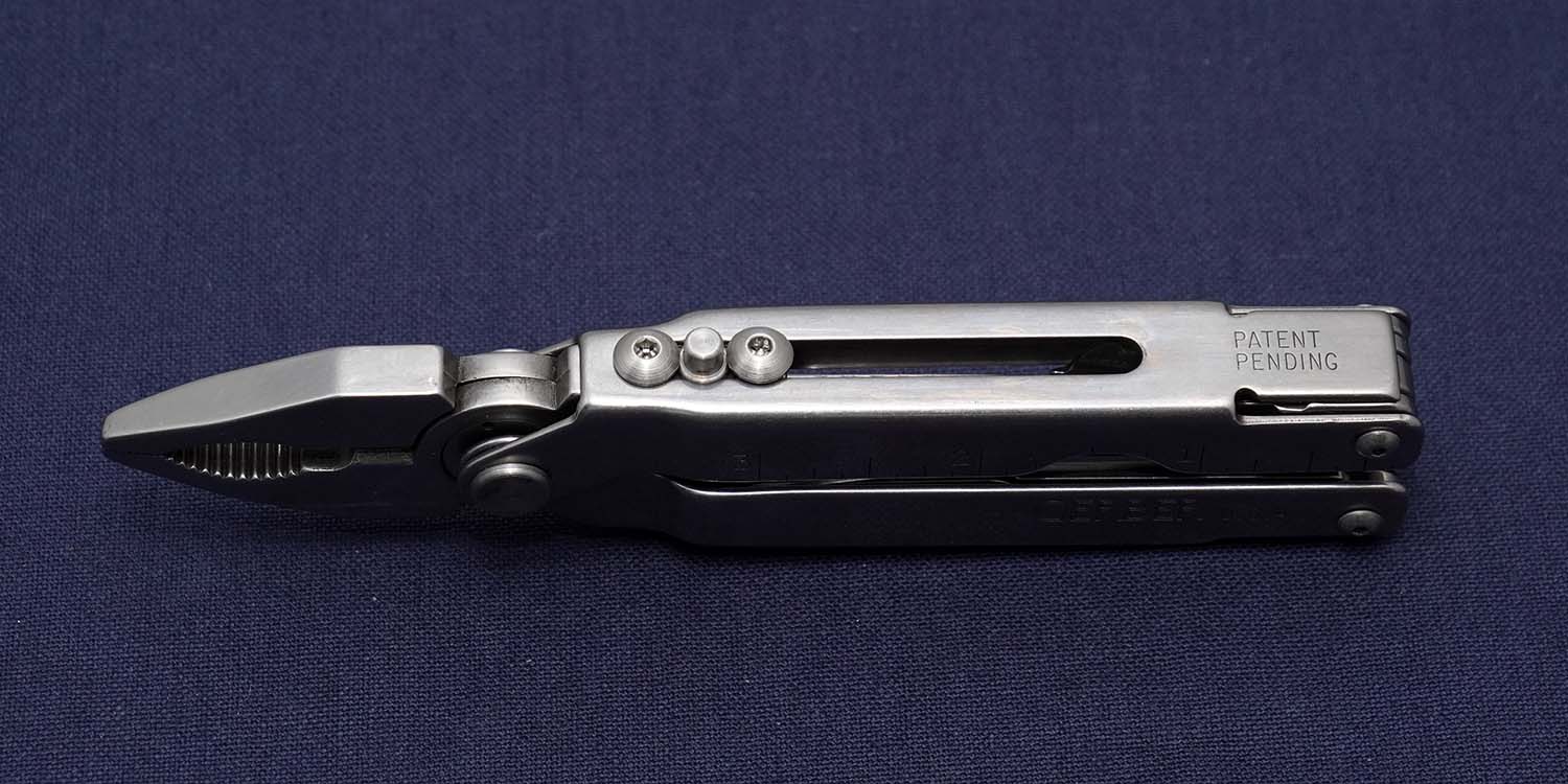 ハンドルの両サイドにあるボタンを押し、スライドするだけでプライヤーヘッドを出せる画期的ツール。ボディはマット仕上げではなく光沢があるタイプです。昔はハサミ付きがありました、今では目にすることのない貴重なモデルです。