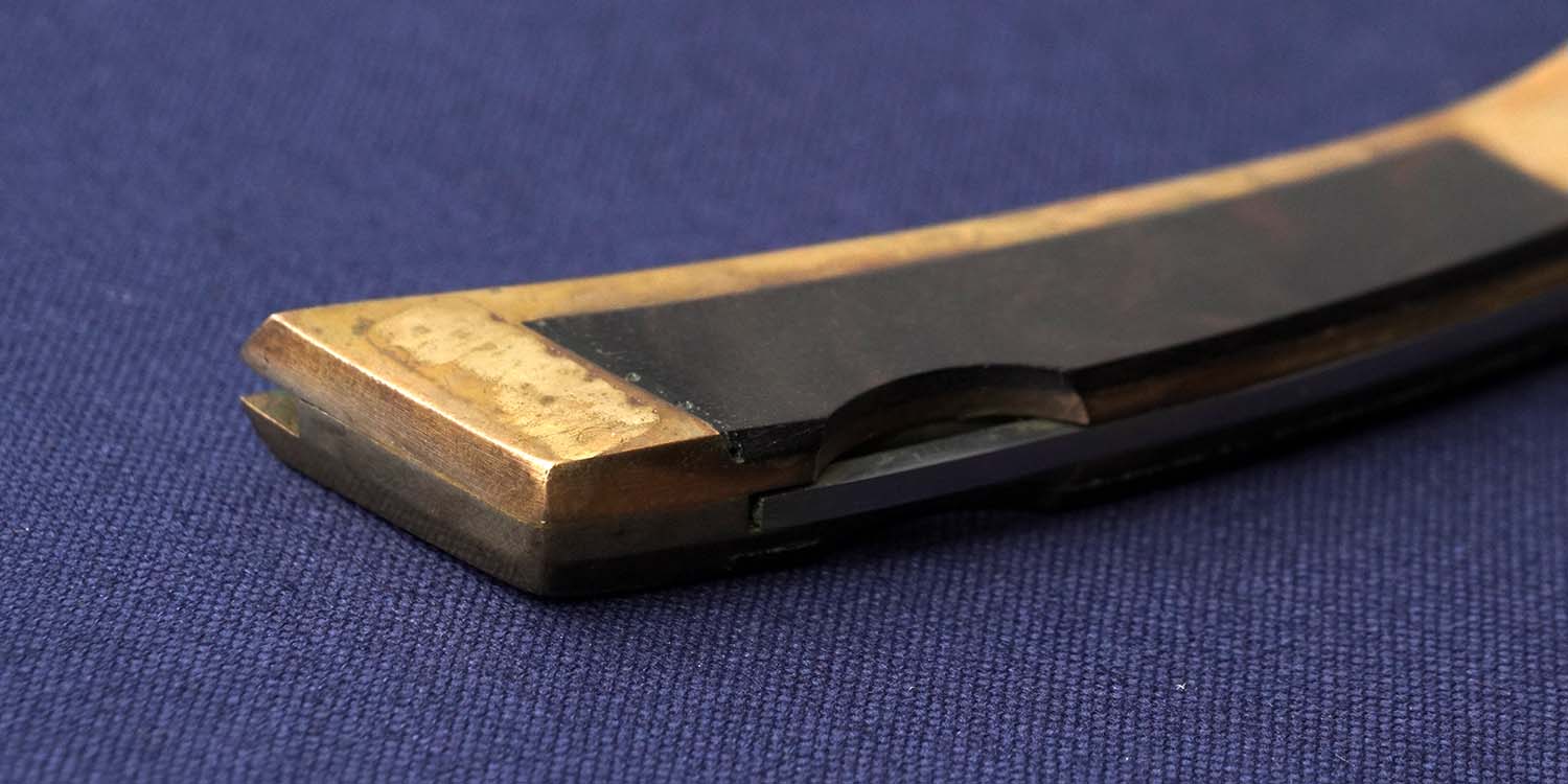 ハンドル | ブラスフレイムにトロピカルハードウッドインレイ 110mm 全長204mm ブラス特有の経年変色あり 小傷多数あり |