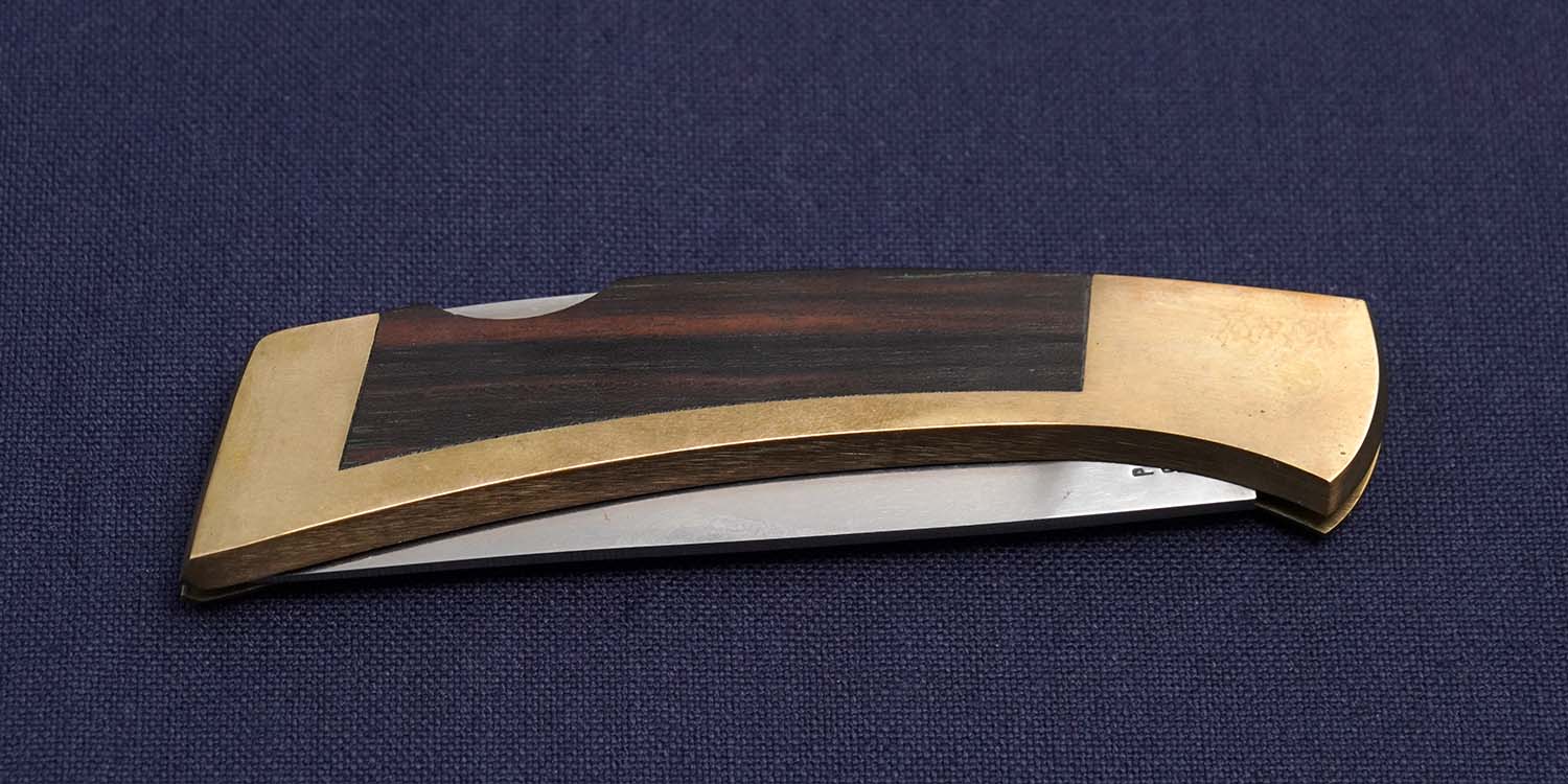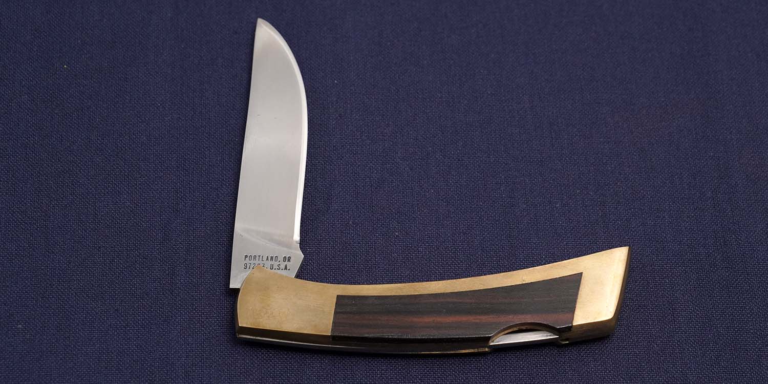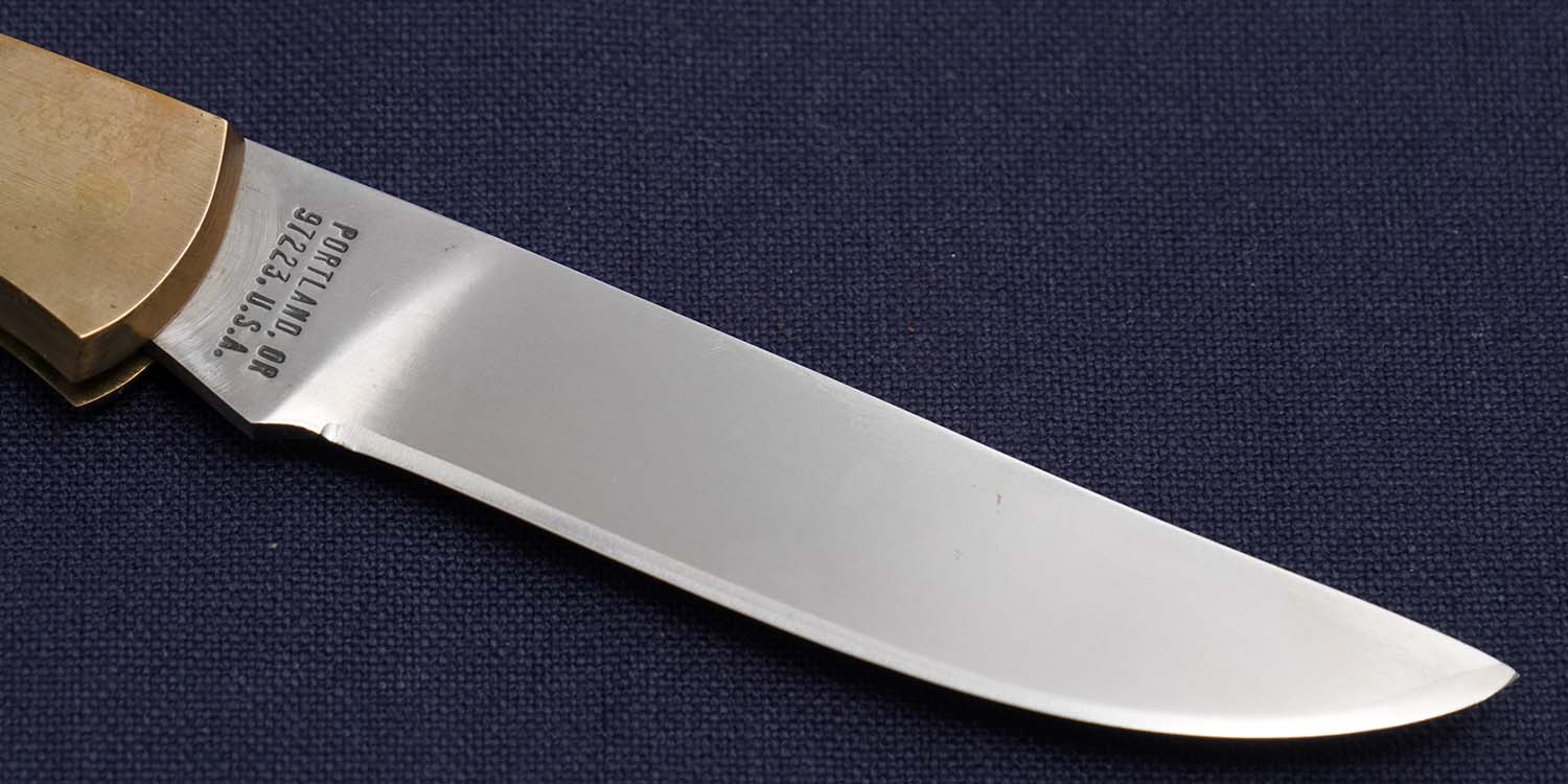 リカッソ斜めのオールドタイプ、未使用品 箱なしです。この掲載品は、ハンドルにインレイされたウッドに厚みがあり後部はステンレスではなくブラスで塞いでいます(6番目の写真)。ハンドル全体が角張った造りのより古い時代 GERBERロゴから1970年代後半〜1980年代前半のものと思われます。