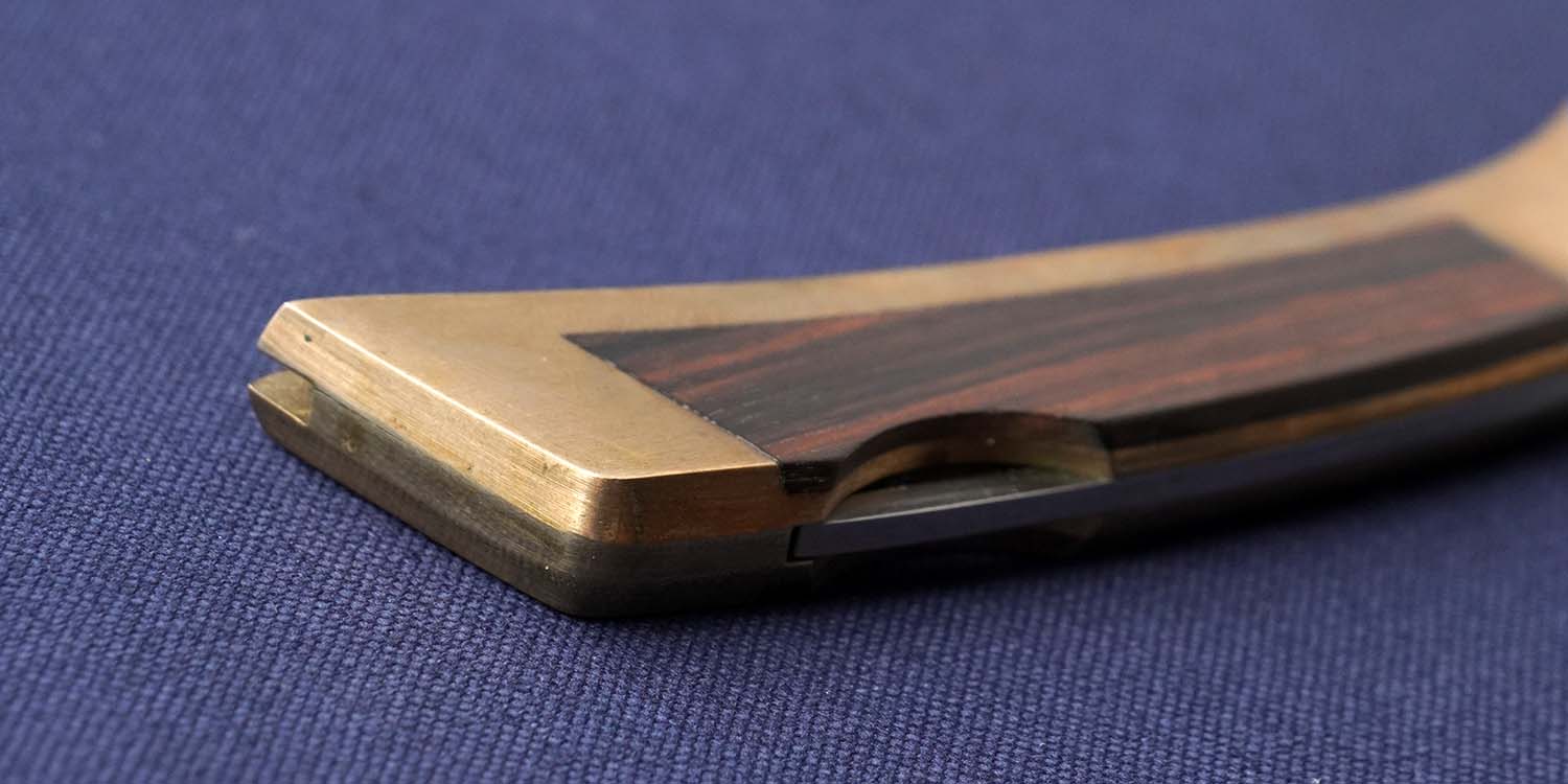 | ハンドル | ブラスフレイムにトロピカルハードウッドインレイ 110mm 全長204mm ブラス特有の経年変色あり 小傷多数あり |