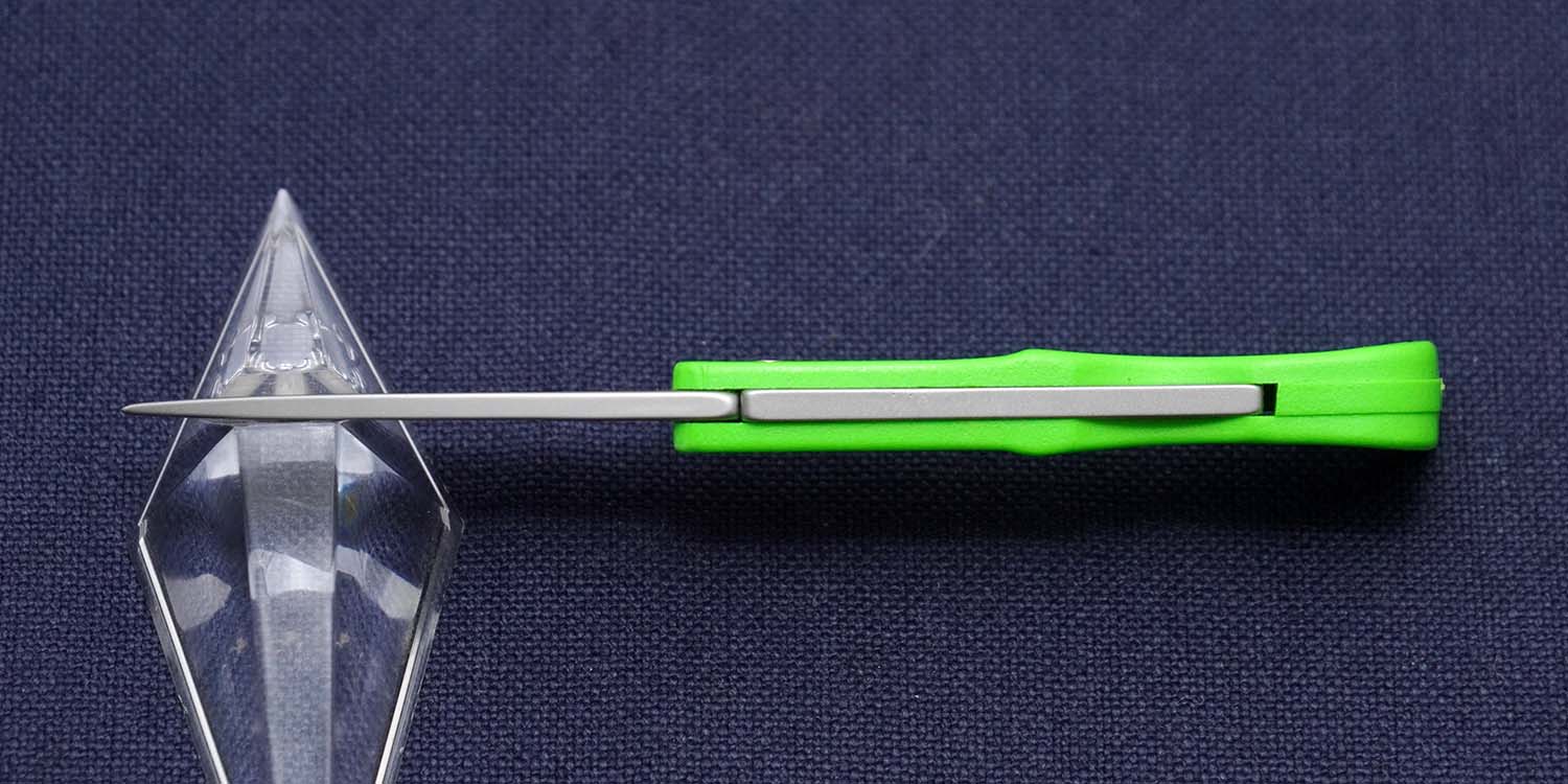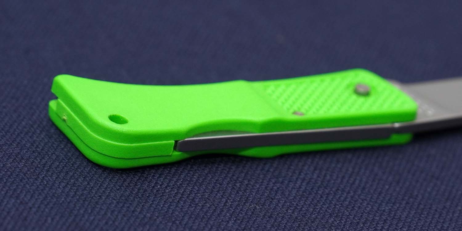 1980年代後期に最小38mm、最軽量10gというGERBERが技術の総力を上げて生産された小型ナイフで、アクションはベアリング付きのため極めてスムーズです。LSTシリーズのナイフには、ブレイドが一気に閉じないように途中の箇所にストッパーが設けられています。二段階で折りたたむ構造になっており、より安全に操作できます。