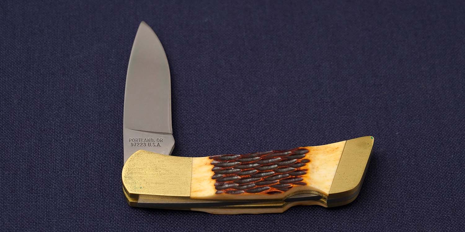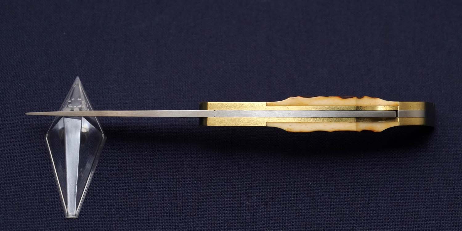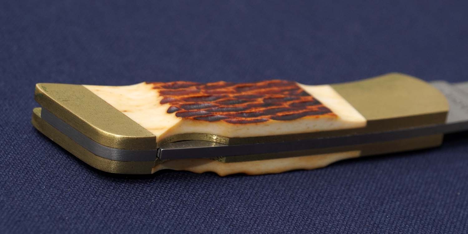ハンドル | レッドジグドボーン 90mm ボルスター:ブラス(緑青拭き取り済み ) 全長155mm 在庫すべてに経年変化によるブラス特有の変色あり |