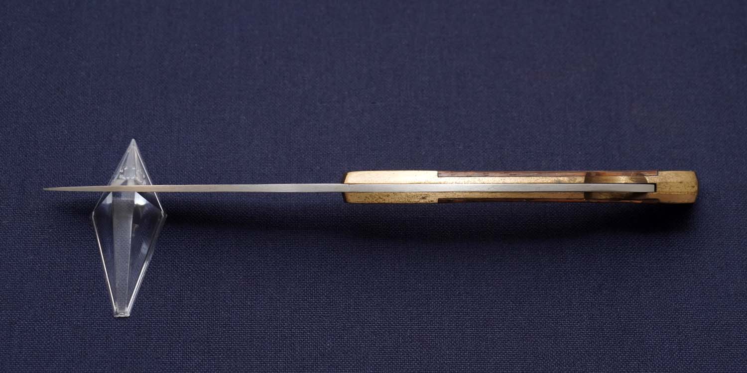 リカッソ斜めのオールドタイプ、未使用品 箱なしです。この掲載品は、ハンドルにインレイされたウッドに厚みがあり後部はステンレスではなくブラスで塞いでいます(6番目の写真)。ハンドル全体が角張った造りのより古い時代のものと思われます。