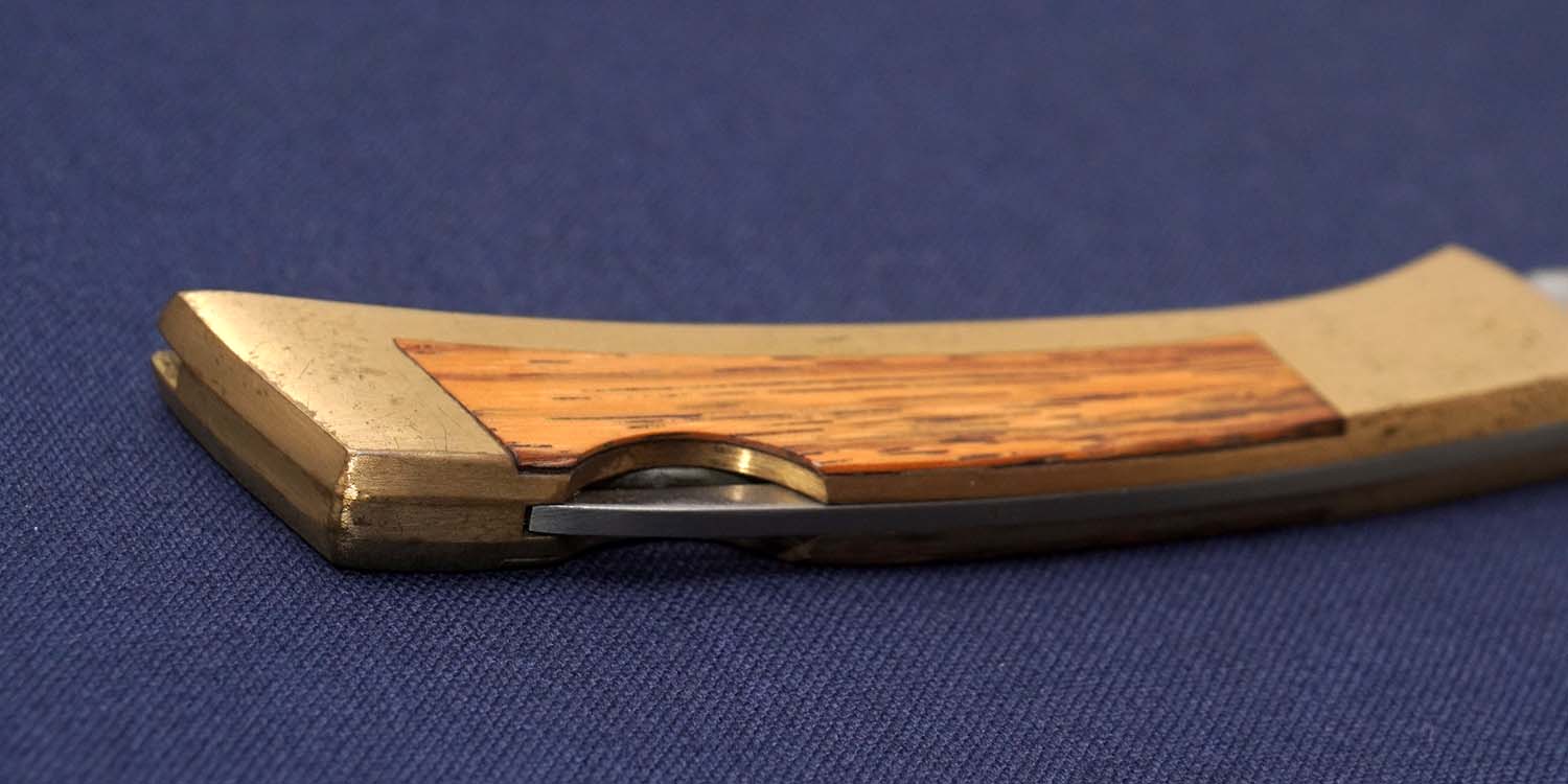 | ハンドル | ブラスフレイムにトロピカルハードウッドインレイ 110mm 全長200mm ブラス特有の経年変色あり 小傷多数あり |