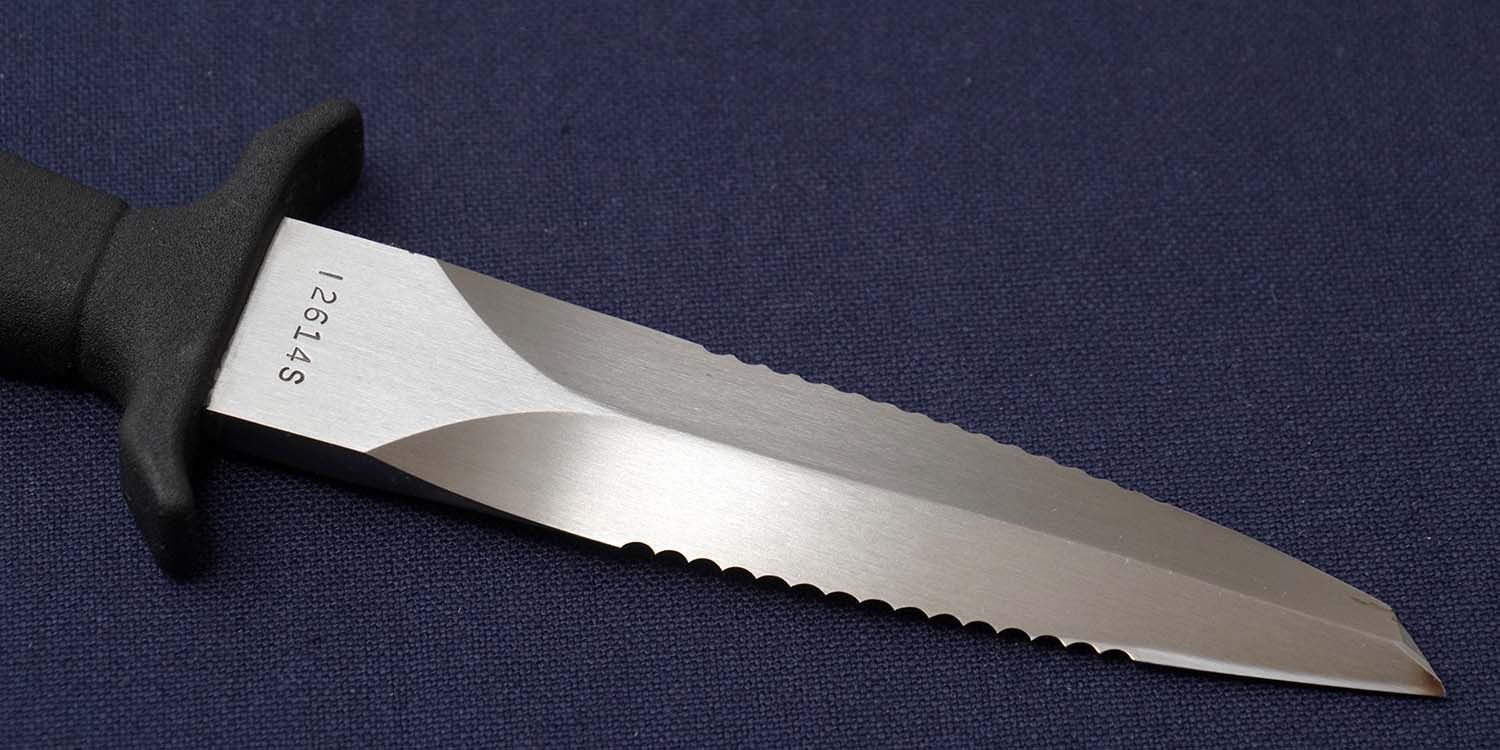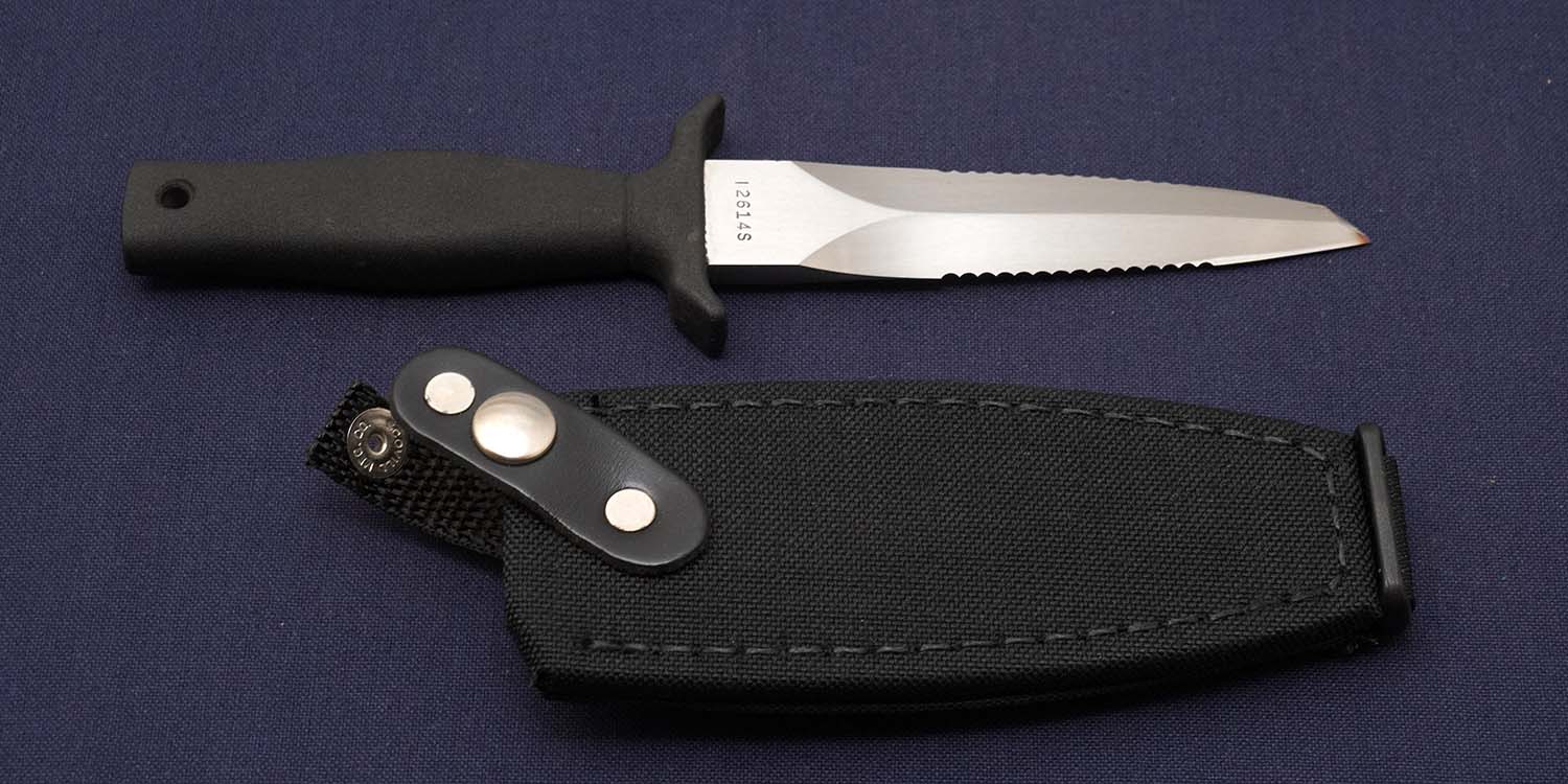 ダブルエッジは、2009年(H21)の法施行前に国内メイカーの協力を得て修正適法化。倉庫に長期眠っていましたが、今回紹介することにしました。上部と下部先端に刃付けなし修正しています。