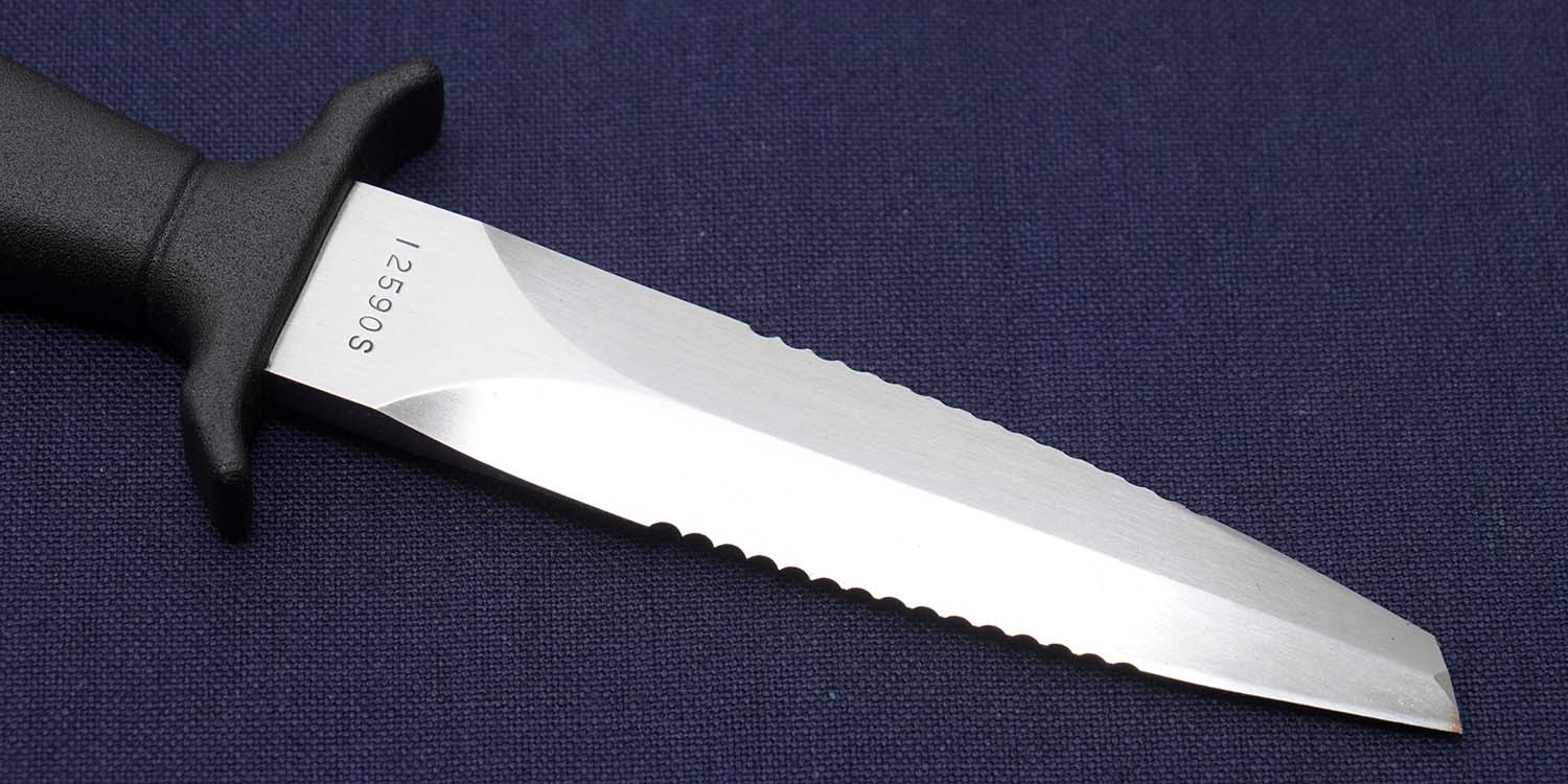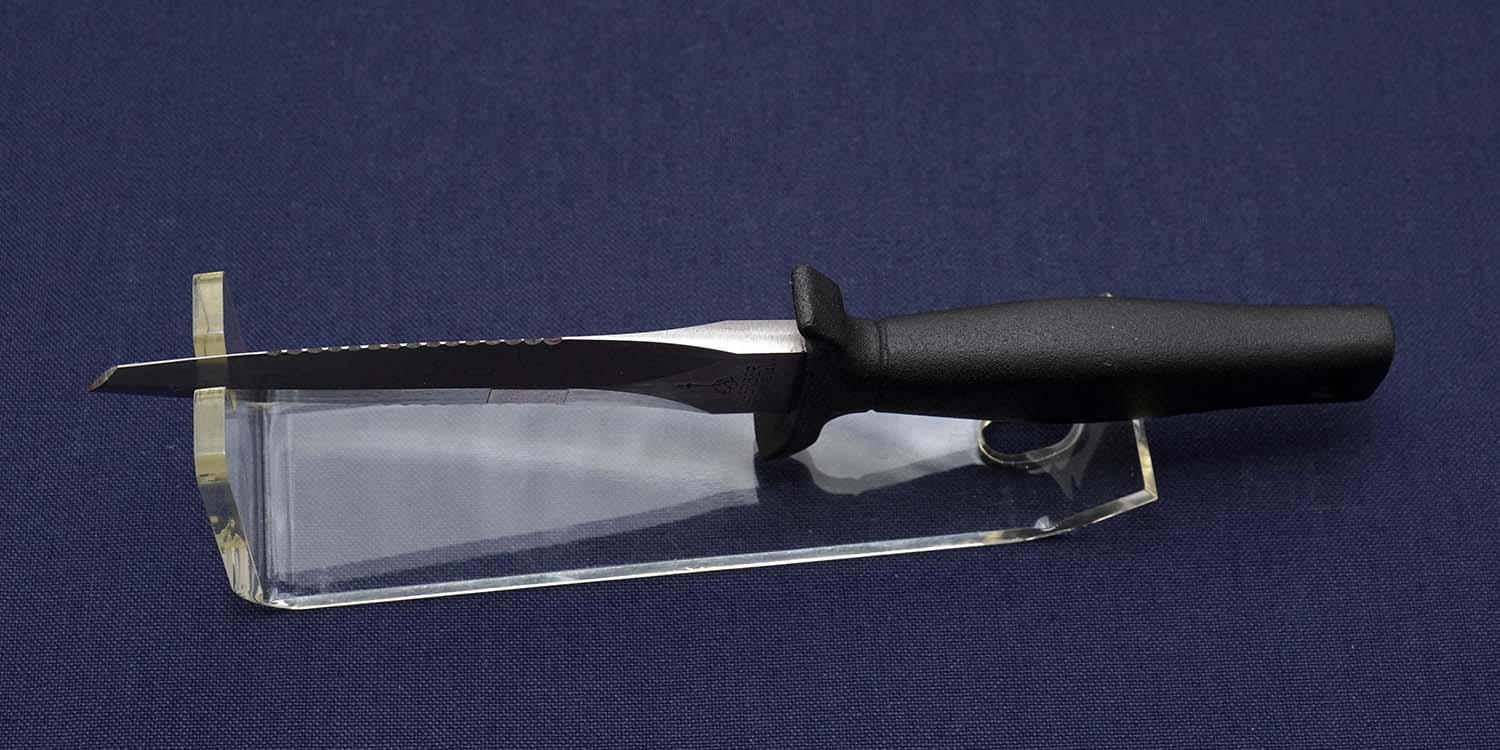 | ブレイド | 440C 116mm (エッジ部30mm+セレイション部47mm) シリアルNo.入り 上部と下部先端に刃付けなし修正済 |