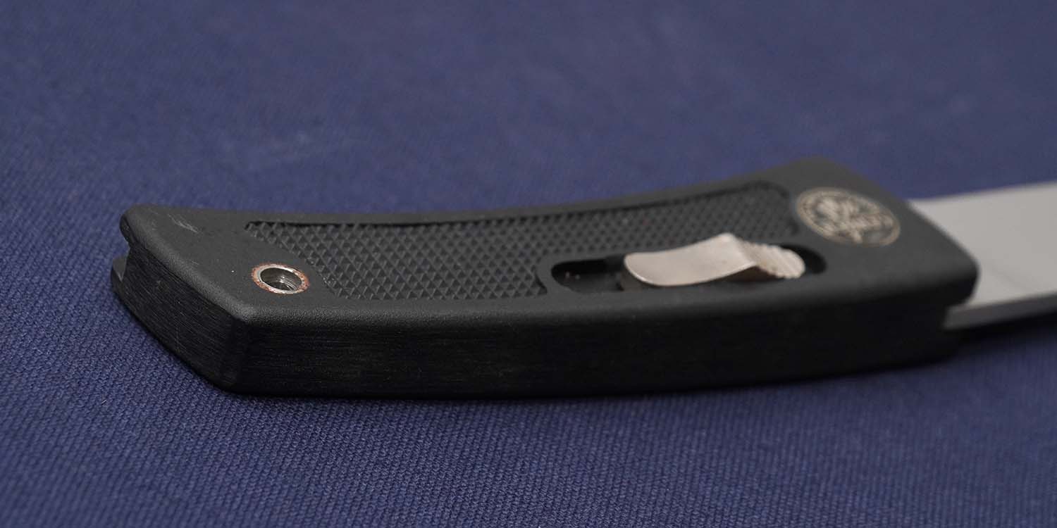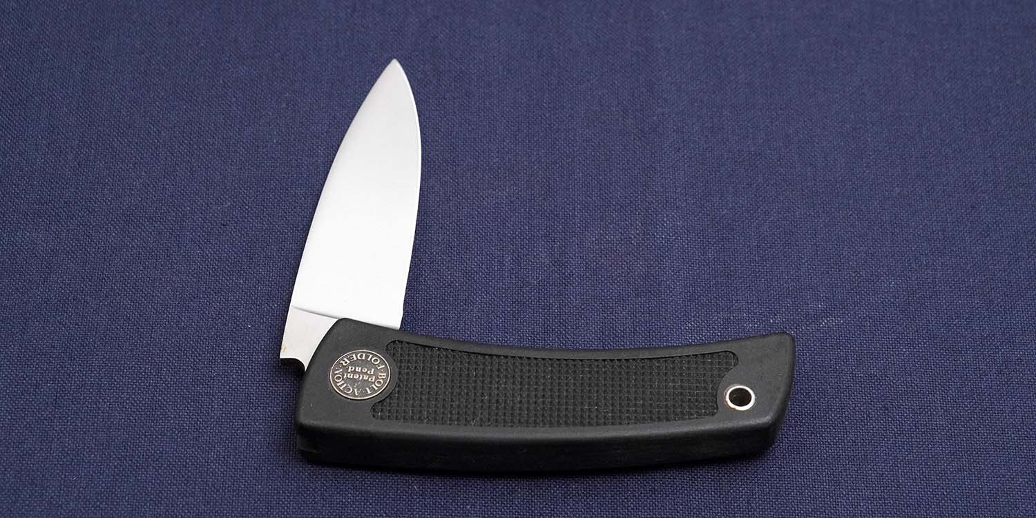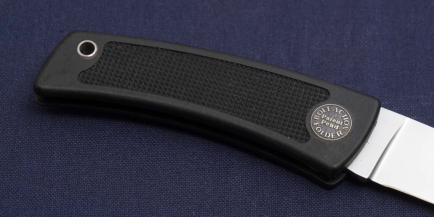 著名なカスタムメイカー、ブラッキーコリンズ考案の画期的なフォールディングナイフ。ロック機構はライフルと同じボルトアクションタイプですから片手でナイフをクローズできる。 ハンドルの両面にメダルをインレイしたオールドの貴重モデルです。