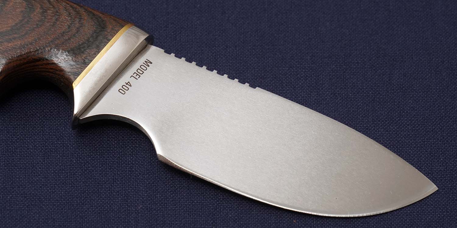 ナイフマガジン2009.2月号P.76の2ページにわたり プロハンターの第一人者中條高明氏がCREEK提供の400Sの実力を絶賛されるキャンプ、アウトドアに適したナイフ。独特のフィンガーグルーブに特徴のある美しいフォルムとコンケイブグラインド仕上げのプレゼンテイションシリーズ。