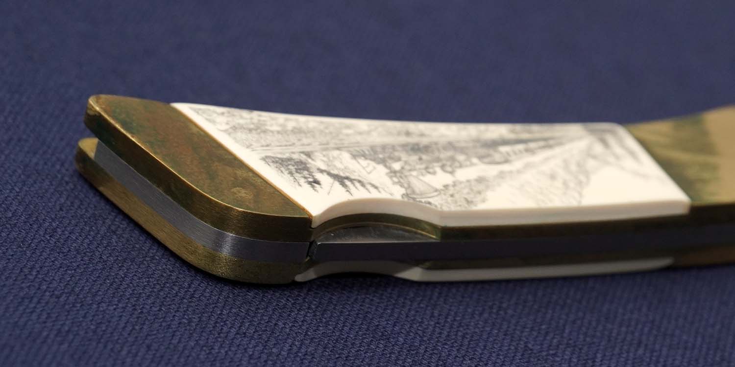 | ハンドル | ブラスフレイム/アイボリーマイカルタインレイ スクリムショウ 90mm 全長155mm ブラス特有の経年変色あり 緑青拭き取り済み |