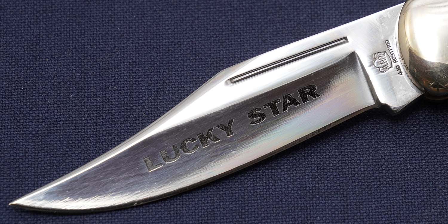 | ハンドル | グレイマイカルタ/ボルスター:ニッケルシルバー/ライナー:ブラス 109mm 全長187mm ボルスターに小傷多数あり |