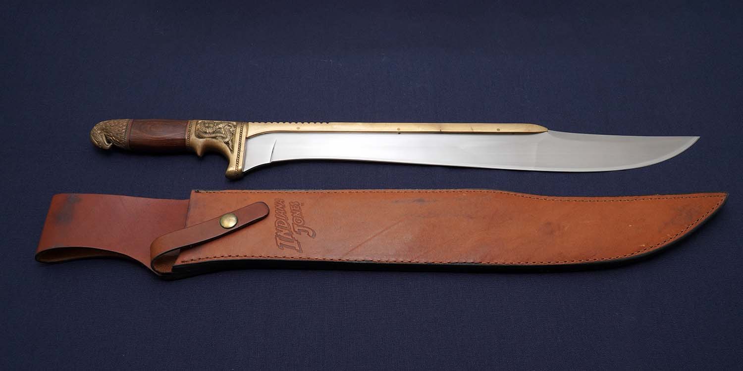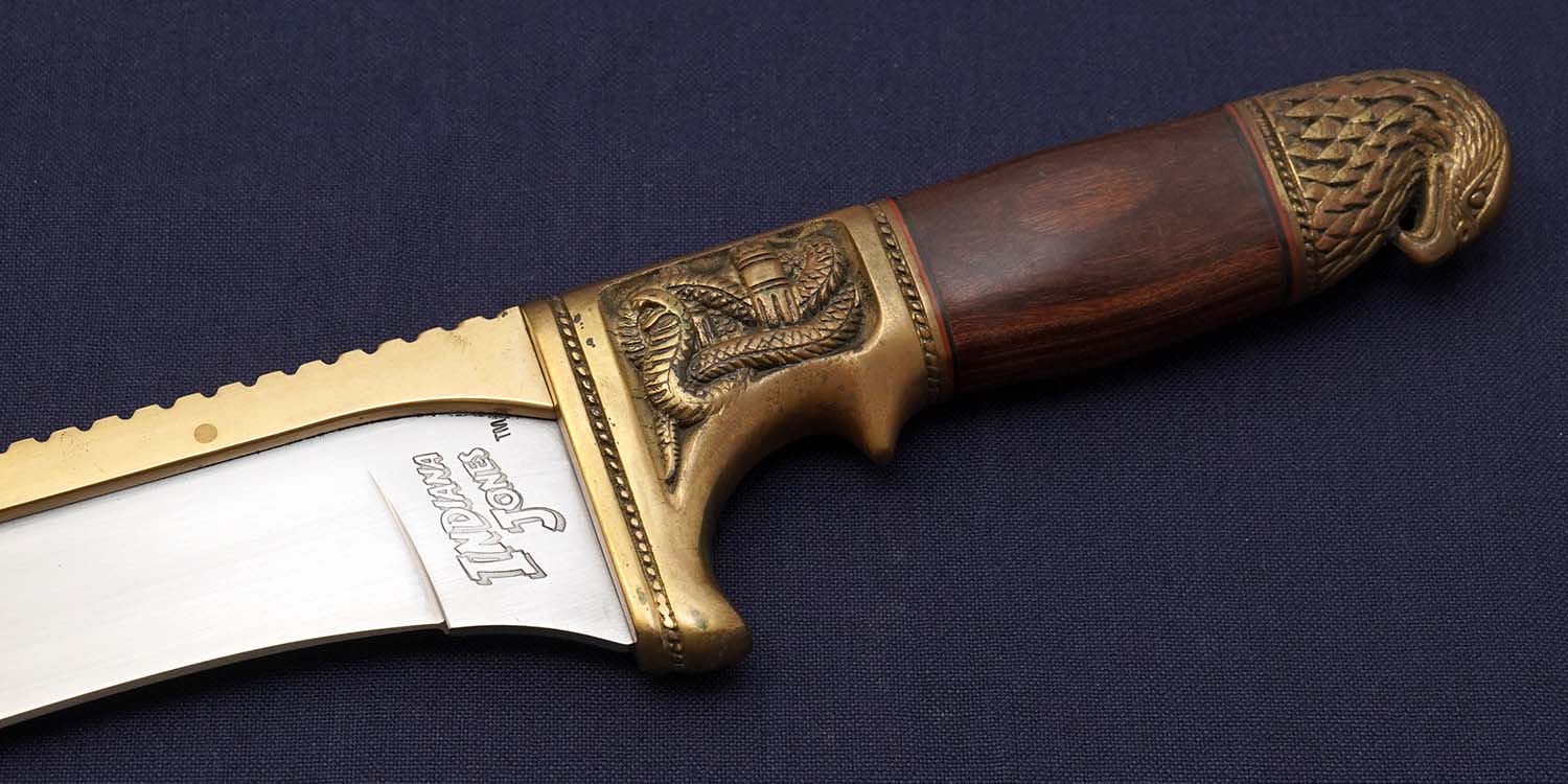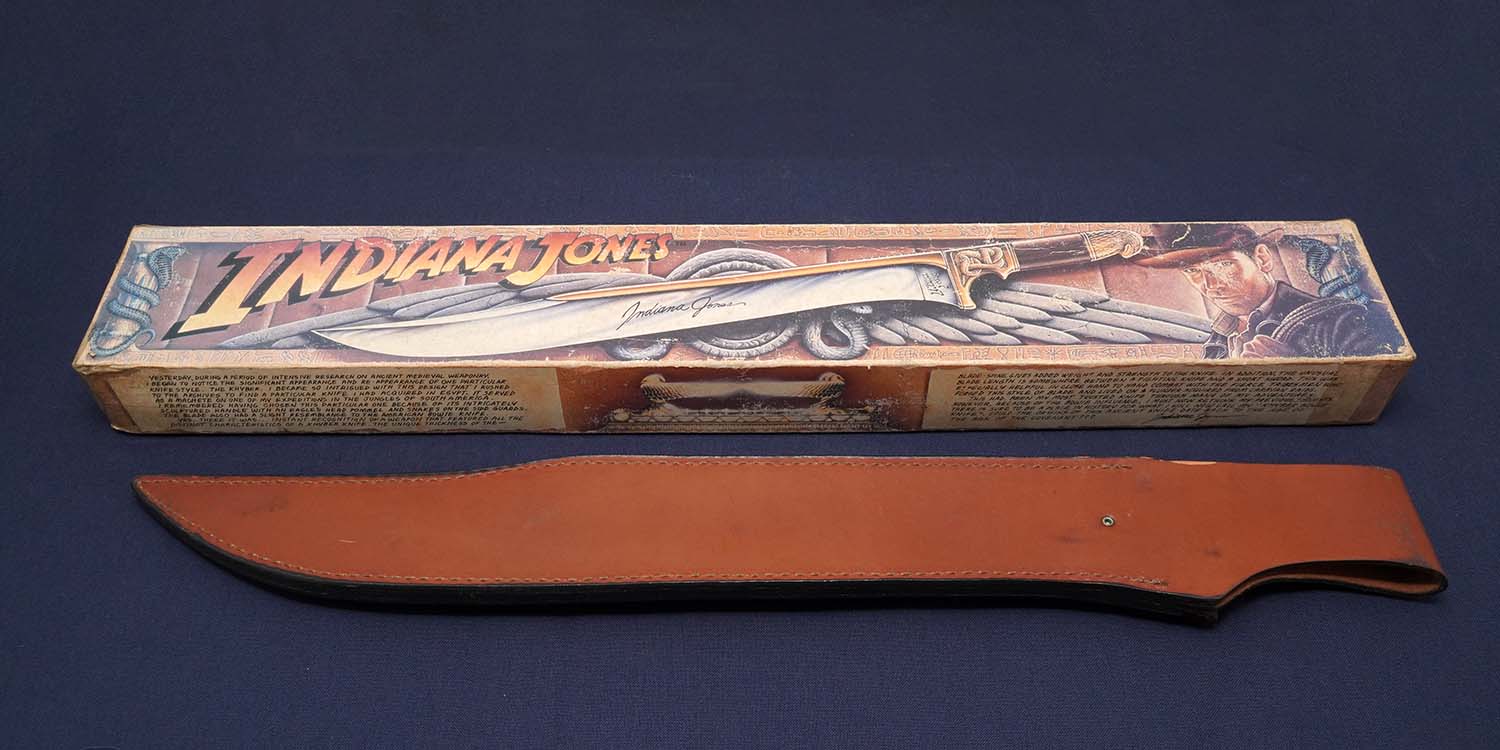 ジョージ・ルーカスの名作映画「インディ・ジョーンズ魔宮の伝説」に登場したボウイナイフのレプリカです。Made in Taiwan 1989年製。