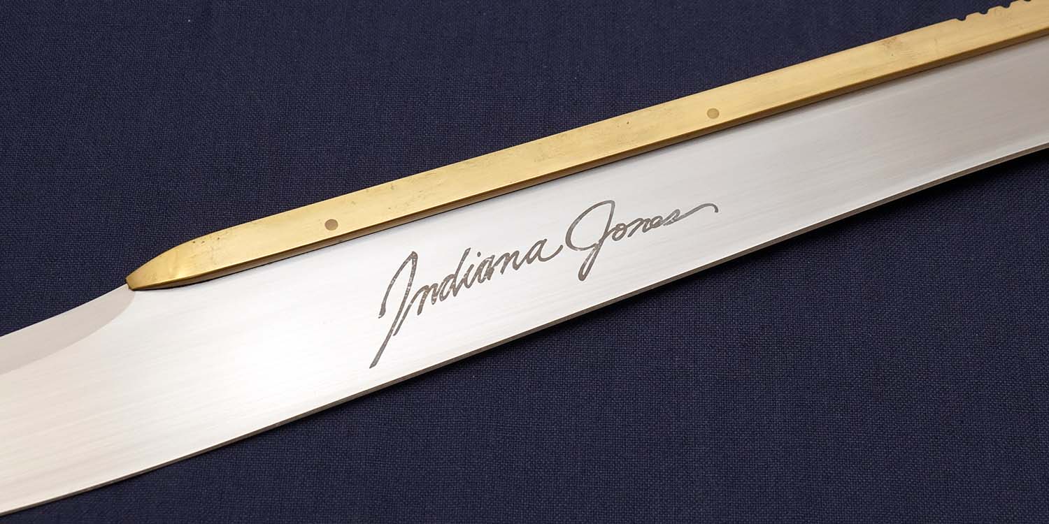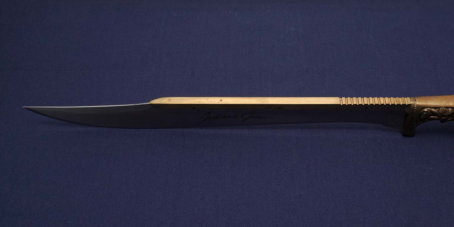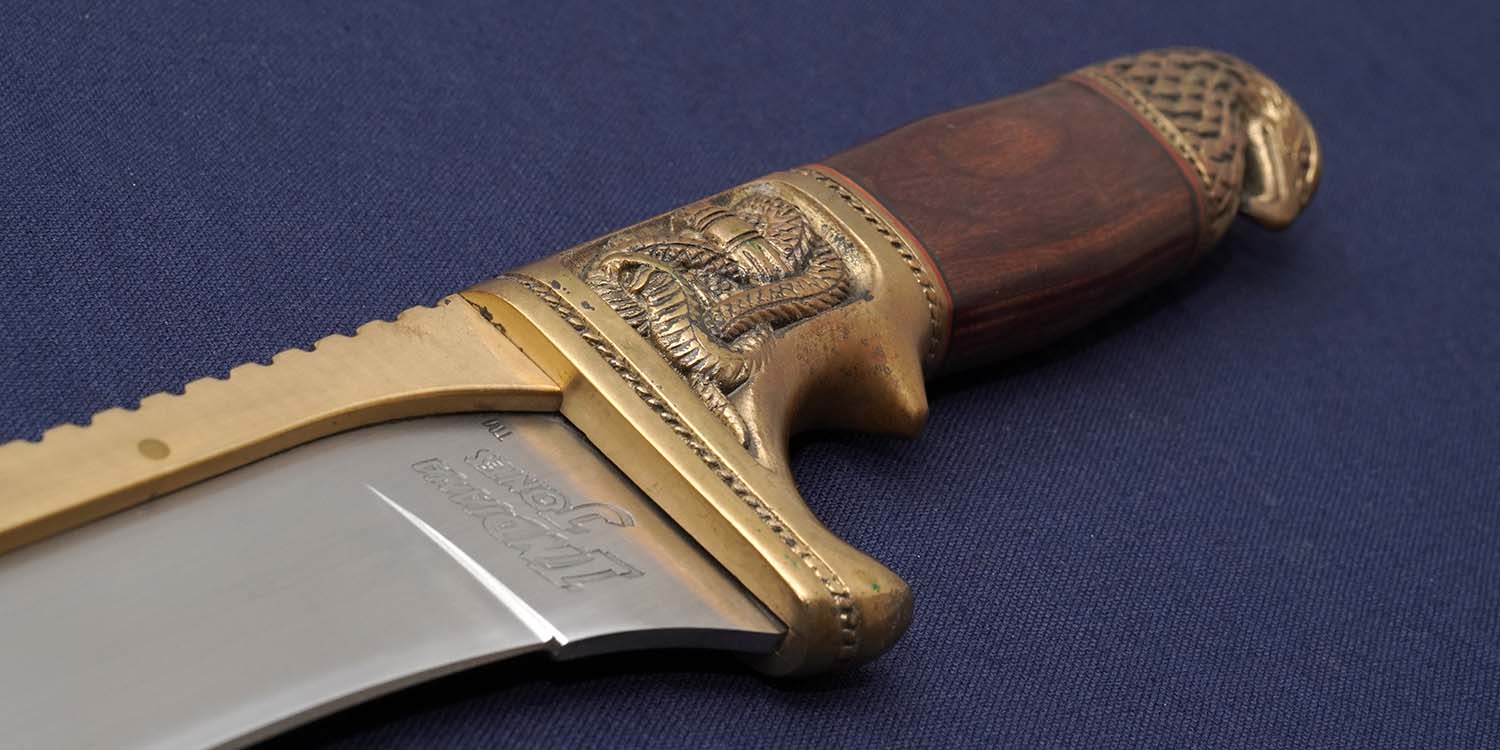 ジョージ・ルーカスの名作映画「インディ・ジョーンズ魔宮の伝説」に登場したボウイナイフのレプリカです。Made in Taiwan 1989年製。