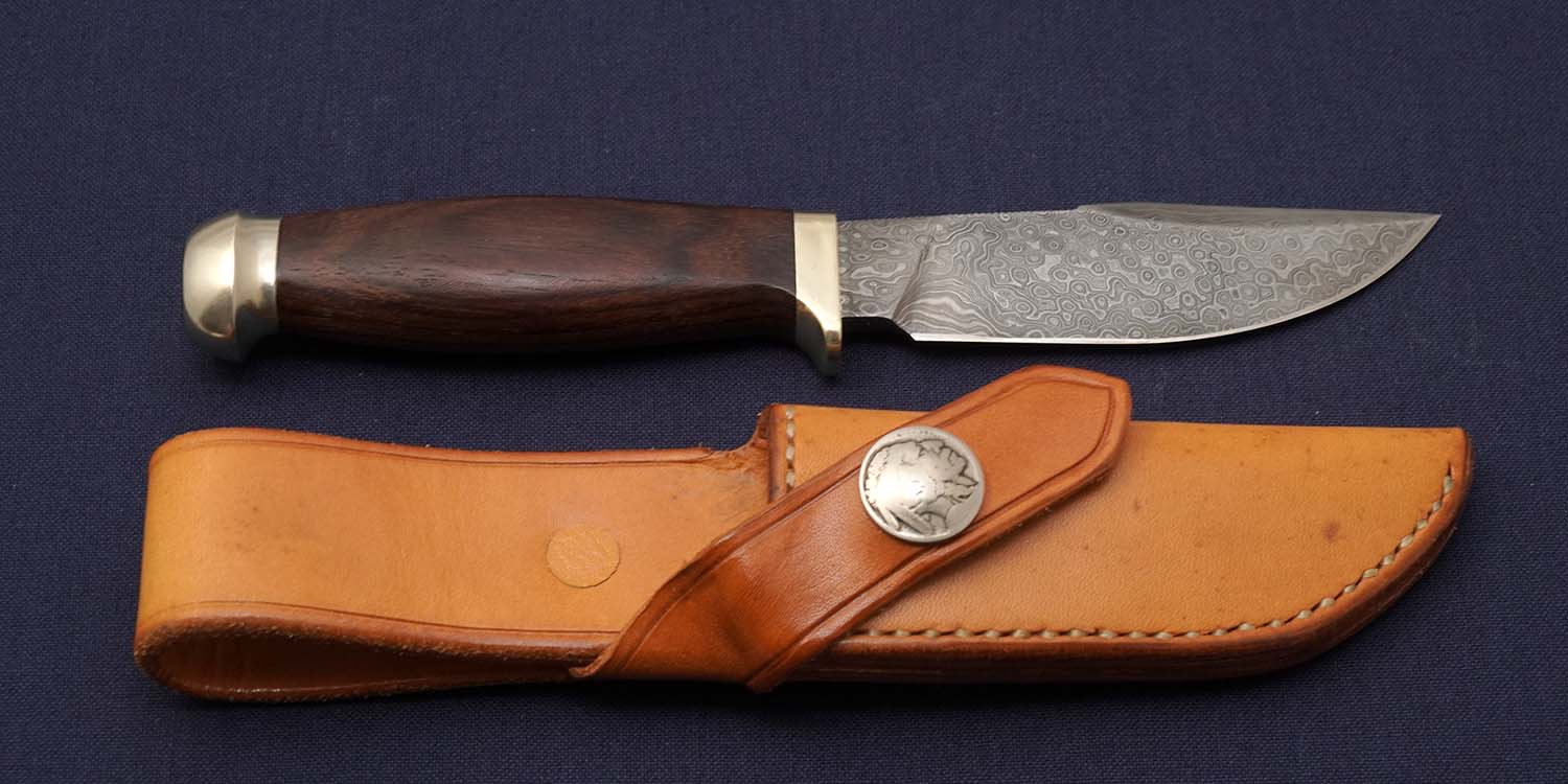 ニホンカスタム サクシャムメイ ダマスカス ハンティング ウッドハンドル/インディアンヘッド コンチョ
