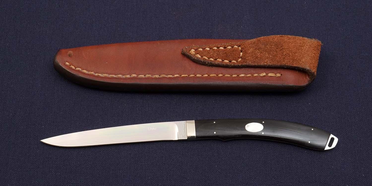 1954年生まれ。小ぶりなシースナイフを得意とするナイフメーカー。ナイフ制作以前はモデルガンの設計、試作に従事していた。SOLD OUTを非表示